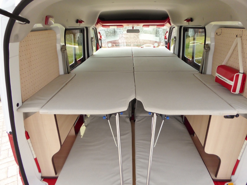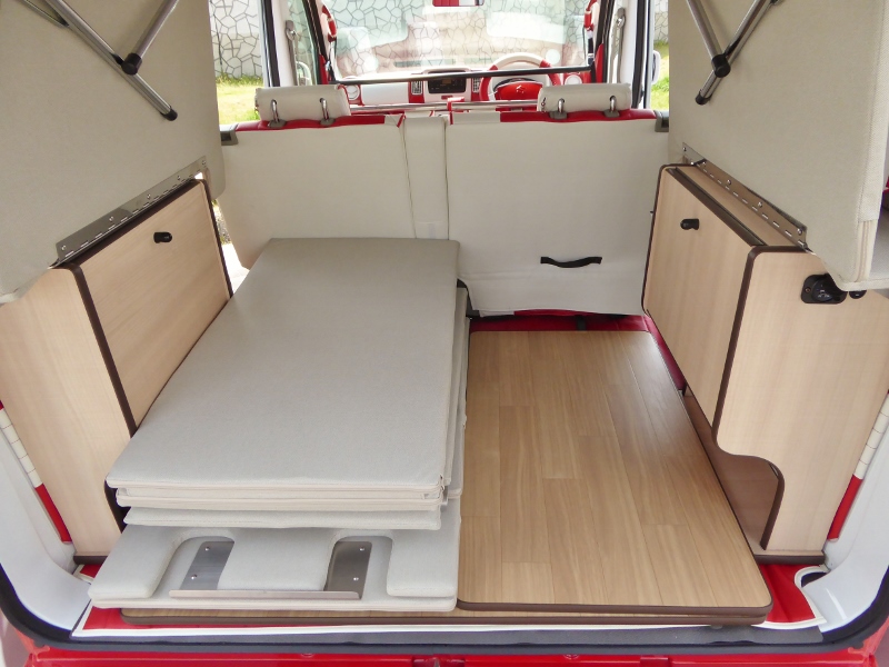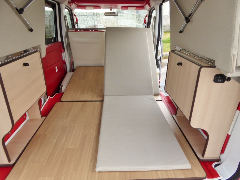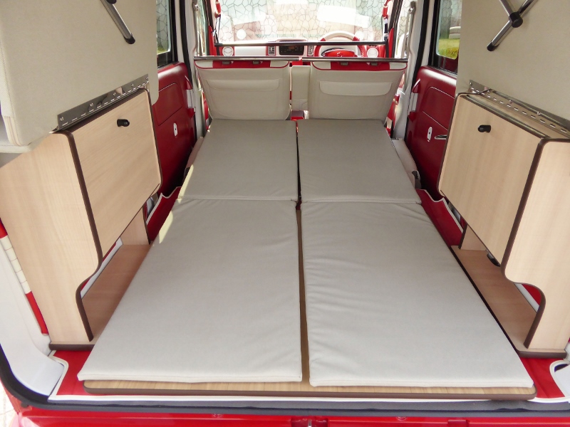 片側2段ベッド、ウッドフローリング、サブバッテリーボックスが標準キットですがオプションで反対側にキットを付ければ4人就寝で4人乗車も可能!