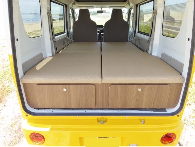 さらに後席足元収納ボックスを追加すれば、通常の収納や就寝時に便利な下駄箱にも活用できます。